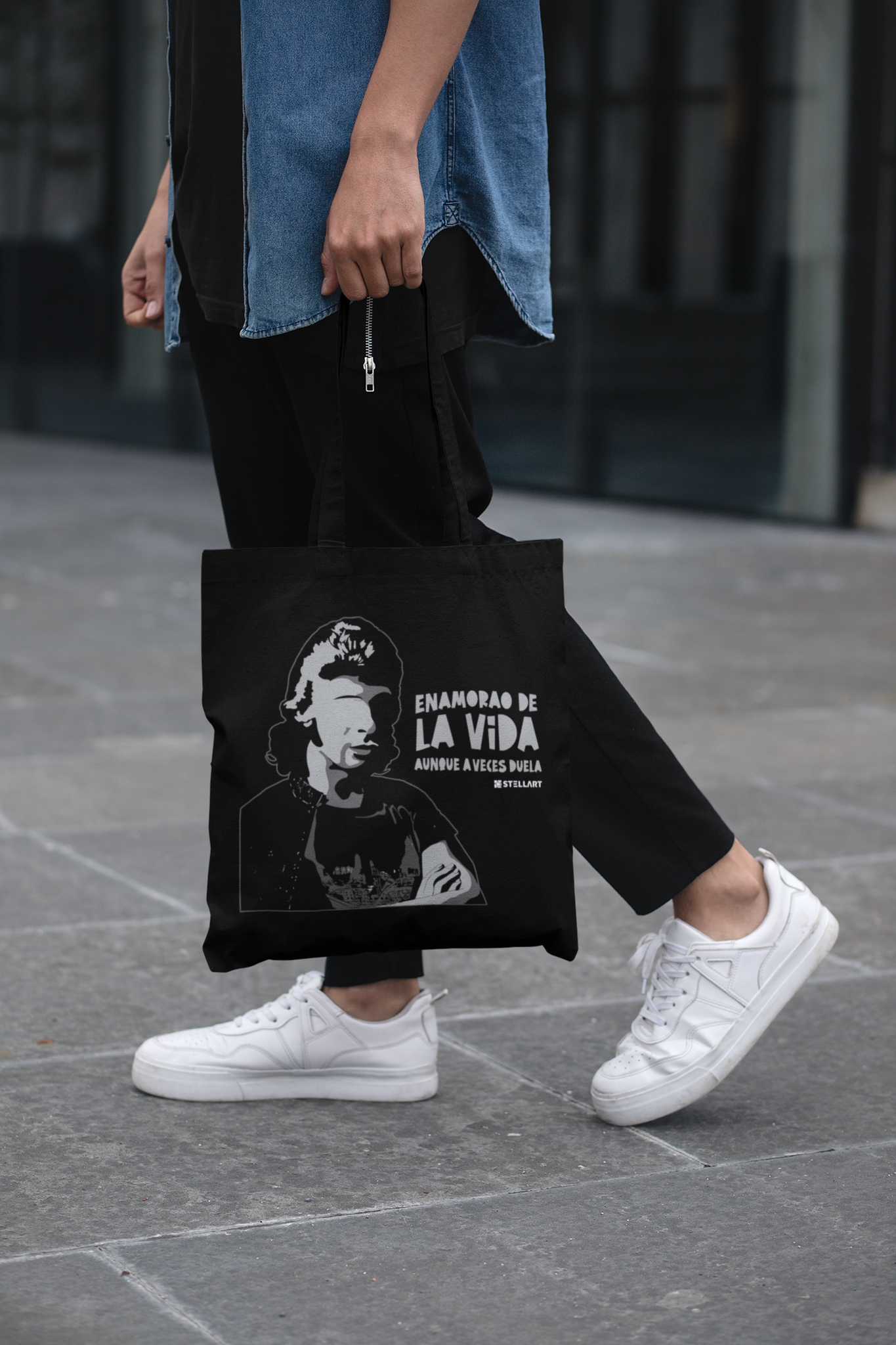 TOTE BAGS reúne los diseños más representativos de todas nuestras líneas sobre bolsas de tela disponibles en color natural o negro. Sostenibles, resistentes y llenas de estilo.